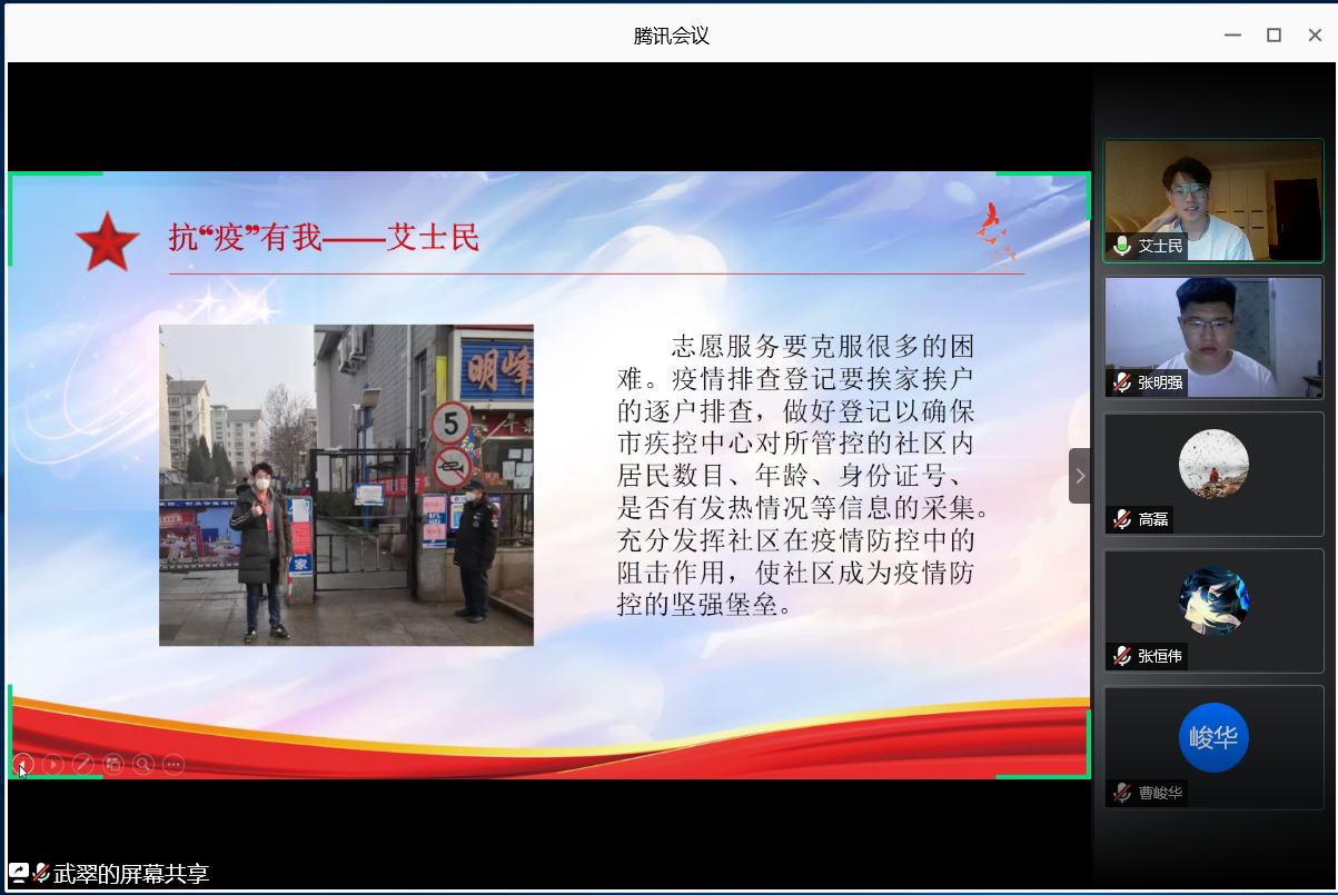 基层党支部举行以“迎党的生日、讲战疫故事、悟初心使命”为主要内容“战疫故事”分享会活动。战疫故事分享会上,每一位党员结合疫情防控期间感受与体验,分享了自身、身边亲属朋友等的抗疫事迹,讲述了个人切身感受。每位党员对全民战“疫”中,14亿民众心往一处想、劲往一处使,积极响应党中央号召,自觉听从疫情防控安排的自觉行动深表感动与感恩。