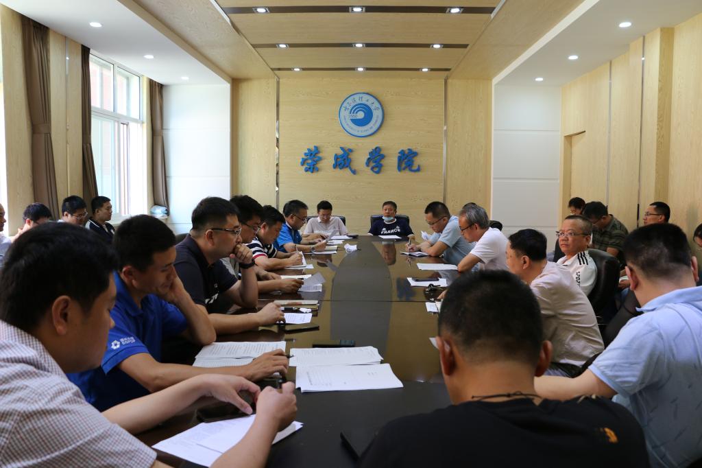在开展暑假校园安全稳定和疫情防控检查工作之前,7月14日下午,围绕检查内容荣成学院组织召开了2020年暑假校园安全稳定和疫情防控工作会议布署相关工作,常务副院长杜野、党委副书记兼副院长王坤出席会议,各系部主任、各部门负责人、保卫办公室相关人员参加了会议,会议由学院党委副书记兼副院长王坤主持。