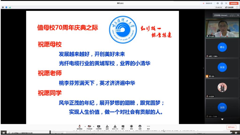 讲座结束后,陈伟总经理为在线学生和老师解答了有关专业学习、未来发展、光纤制造等方面的问题,在充分肯定学院办学的同时,从企业需求的角度对师弟师妹提出了更高的要求。祝愿母校发展越来越好,开创美好未来;祝愿老师桃李芬芳满天下,英才济济遍中华;祝愿同学跟党圆梦,实现人生价值,做一个对社会有贡献的人。