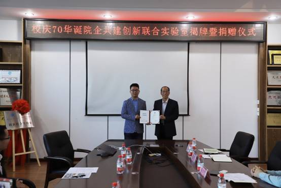 会上,双方就人才培养、大学生竞赛、成果转化等方面进行深入的沟通。签约仪式于16:00正式开始。荀继明总经理与我校电气学院康守强副院长签署《电子信息工程专业创新联合实验室合作协议书》,荀继明总经理与张军书记共同为联合实验室揭牌,张军书记为企业颁发捐赠证书。会后,双方代表合影留念并参观学院实验室。