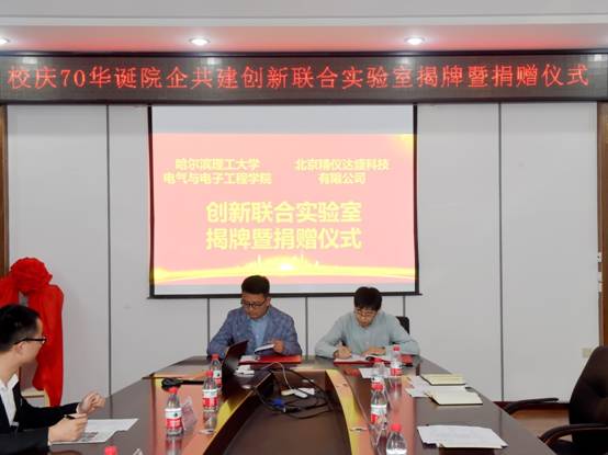 在我校70华诞即将来临之际,北京精仪达盛科技有限公司情系我校发展,向我校电气学院电子信息工程专业捐赠价值12万元实验设备,并与我校电气学院共建联合实验室,为完善我院专业育人体制,深化产教融合,切实推进院企合作助力添砖。9月16日下午,我校电气学院与北京精仪达盛科技有限公司在新主楼G区(G1014)会议室举行“校庆70华诞——院企共建创新联合实验室”揭牌暨捐赠仪式。北京精仪达盛科技有限公司东北区总理经理荀继明等一行三人出席签约捐赠仪式。电气学院党委书记张军、副院长康守强和电子信息工程系全体教师出席。仪式由电气学院副院长康守强主持。
