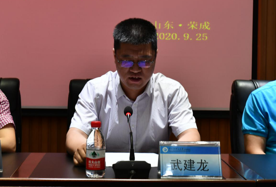 杜野代表荣成学院对2020级全体新生表示热烈欢迎,他介绍,工程管理硕士研究生在荣成校区现已招生三届,本届录取59人,在读研究生已达149人,它的成功开办推进了校地合作上升了新高度。学院将创造一流的学习环境,营造积极健康的学习氛围,希望全体学生秉承“知行统一,博厚悠远”的理工校训,践行“求是自强,务实创新”的理工精神,将理工品质和所学知识,应用到实际工作中,以更高的能力和水平为荣成市的建设和发展贡献自己的一份力量。