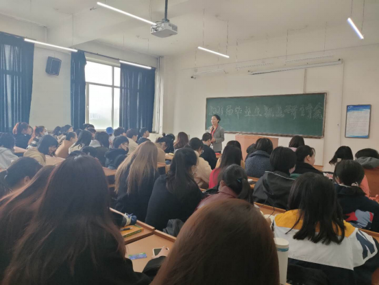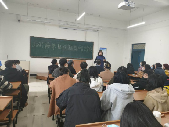 周书记分析了当前的就业形势,讲解了就业政策,传授了她多年积累的丰富经验,鼓励大家要积极主动的面对就业,自我认可,增强信心,做好简历,积极联系参加招聘;面对求职失败,不能消极应对,更不能放弃。希望同学们积极、务实、自信、不怕麻烦,统筹做好学业和就业工作。最后周书记希望同学们能胸怀远界,规划好自己的时间,适应就业的压力,务必重视自己的工作,明确自身优势,成为一名优秀毕业生。