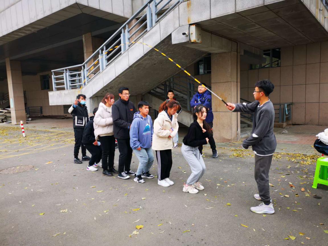 在比赛过程中,同学们需齐心协力通过重重考验,虽然深秋的天气已经略显寒意,但是同学们顽强不息,奋勇争先的精神抵御寒冷,让这个金色的秋天增添了一份青年特有的热情。