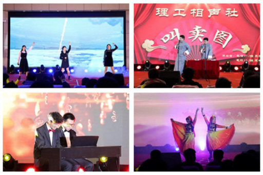 灯光渲染着舞台,音乐呼唤着梦想。精彩节目轮番而至,异彩纷呈,为观众呈现出一场丰盛的视觉盛宴。黄昏未至,日永不落,一首《日不落》给观众以心灵的震撼,唱出了青春的张扬,唱出了未来的希望;小品《兄弟,我拿什么拯救你》在欢笑中诉说手足之情,人生结交在终结,莫为升沉中路分;入我华夏,今生无悔,由我院女教师组成的翩翩舞蹈队带着时代的气息,用舞蹈《我爱你中国》,令在场的观众充分感受到对祖国的爱恋;理工的追逐,理工的辉煌,歌曲《我和我的祖国》、钢琴演奏《拉德斯基进行曲》、民族舞《西域之美》、歌曲串烧《燃情岁月与律动人生》、大合唱《奔跑》、《国家》等等,用嘹亮的歌声与激情的舞蹈,传达出理工青年的无限热情;《赤心子衿,志耀东胶》,用动人的朗诵演绎了对理工建校70周年的歌颂,70年风雨兼程,70年不忘初心,我们新一代理工人满怀憧憬与希望,坚定信念与梦想,风雨同舟,齐步向前!