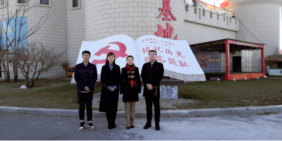 外国语学院党委副书记、副院长周晓丽、辅导员李竖新、王宏健、王梓懿在黑龙江省壮歌东北抗联体验式国防教育基地合影留念