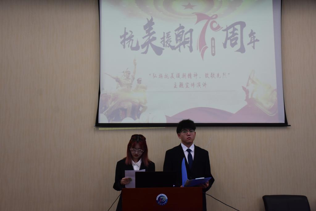 为了落实和践行《新时代爱国主义教育实施纲要》精神,以理想信念教育为核心,将立德树人根本任务落到实处,由自动化学院团委主办、学习习近平新时代中国特色社会主义理论研究会承办的“致敬先烈,弘扬伟大抗美援朝精神”主题演讲比赛决赛阶段于11月10日在新主楼E1404会议室举行。自动化学院党委副书记徐岩、团委书记隋然出席了本次比赛。