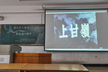 为纪念抗美援朝战争中国人民志愿军出国作战70周年,弘扬伟大爱国精神,加强爱国主义教育,11月7日中午12:30,外国语学院于南区三号楼202教室开展了纪念抗美援朝作战70周年学生党员观影系列活动。外国语学院辅导员王宏健老师带领全体党员和发展对象观看抗美援朝电影《上甘岭》。