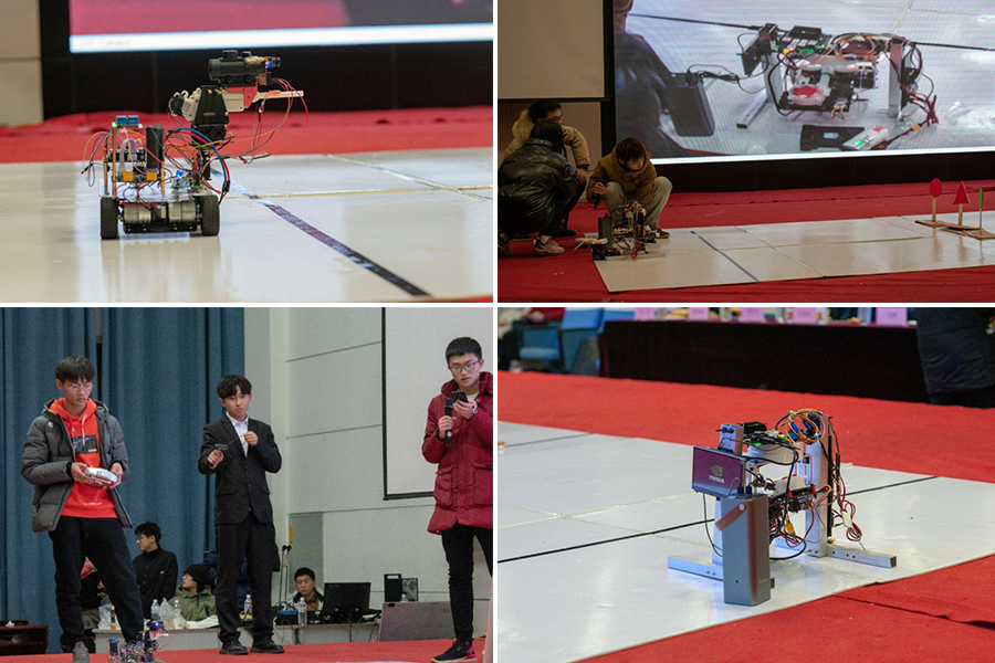 比赛共分为三个项目,分别是A题搬运机器人,参赛小组成员通过操作端对机器人进行操控,实现机器人的运动控制。通过操控机器人的位置使得让物块进入机械臂之间,再由人工控制机器人将物块推至指定同色区域。B题智能水温控制系统,运用单片机、加热装置、制冷装置、显示屏等方面实现对水温的升高与降低调控,并在规定时间内尽快完成。C题打靶机器人,通过人工遥控和显示屏上对图像的显示进行瞄准发射子弹成功击中目标,并通过更换线路进行自动瞄准射击。