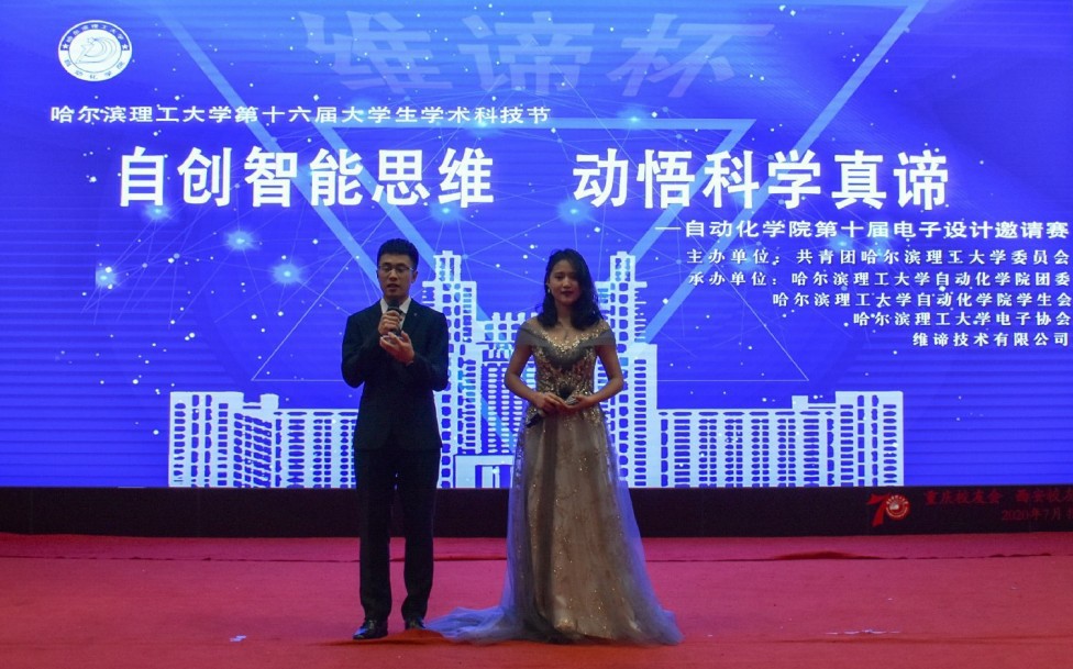 为丰富校园文化建设,培养大学生实践能力与创新精神,提高大学生科学文化素质,加快普及大学生科技创新知识教育,由校团委主办,自动化学院承办的哈尔滨理工大学第十六届大学生学术科技节暨自动化学院“维谛杯”电子设计竞赛于12月4日18点在我校一号楼0220报告厅顺利举行。本次活动以“自创智能思维,动悟科学真谛”为主题,以培养大学生“勇于探索,勇于创新”的科学精神为目的,同时,培养学生团队合作意识,切实提升大学生综合素质能力。本次活动得到学校、学院领导高度重视,同时得到了电子协会与维谛技术有限公司的大力赞助。自动化院院长许家忠、党委书记贾红宇、党委副书记徐岩、副院长仲伟峰、学院团委书记隋然,院学生会指导教师付宇、评委老师闫哲、李巍、郭立东出席了本次科技节。