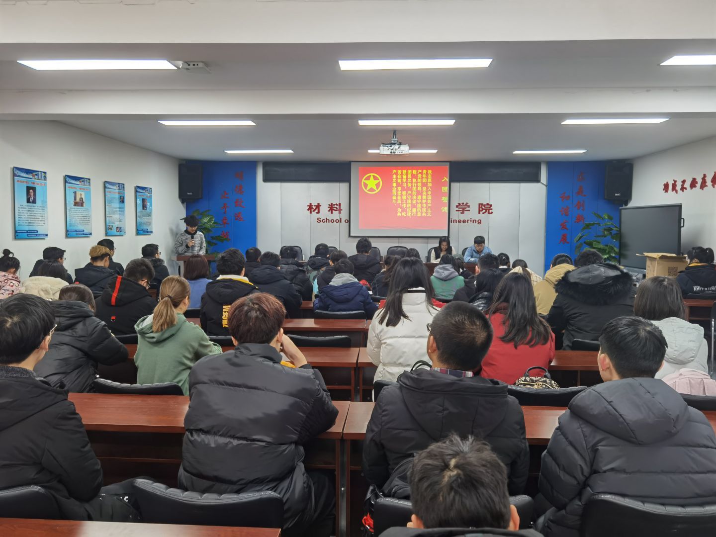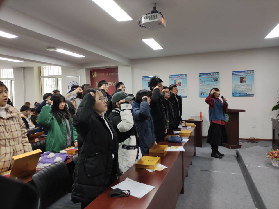 为贯彻落实中共中央关于加强和改进党的群团工作的要求,进一步规范发展团员工作,遵照《中国共产主义青年团发展团员工作细则》要求,2020年12月10日中午,材料学院团委于五号楼212会议室举行了2020年新团员入团仪式,仪式由院团委副书记张英明主持,院团委书记武翠老师、院团委全体成员、20级团支书、20年新发展团员出席仪式。