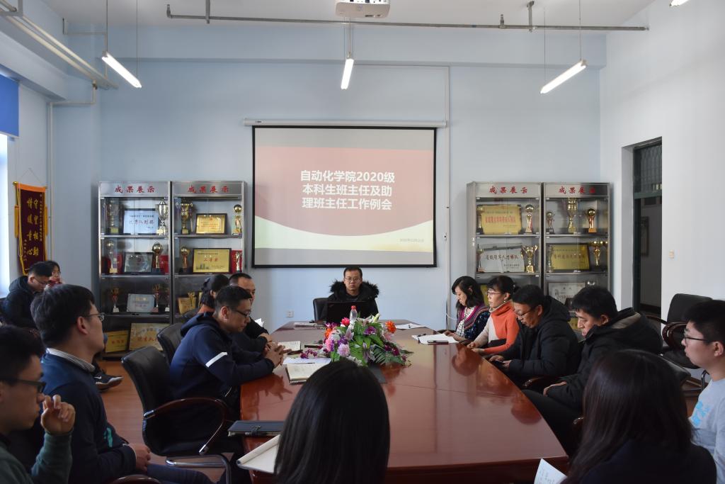 为了坚持完善自动化学院全员、全过程、全方位育人工作,促进2020级本科生学风建设工作扎实推进,2020年12月15日,自动化学院在新主楼E1412召开本学期第二次2020级本科生班主任及助理班主任工作例会。学院院长许家忠、党委副书记兼副院长徐岩、2020级辅导员、全体2020级本科生班主任及助理班主任参加会议。会议由徐岩主持。