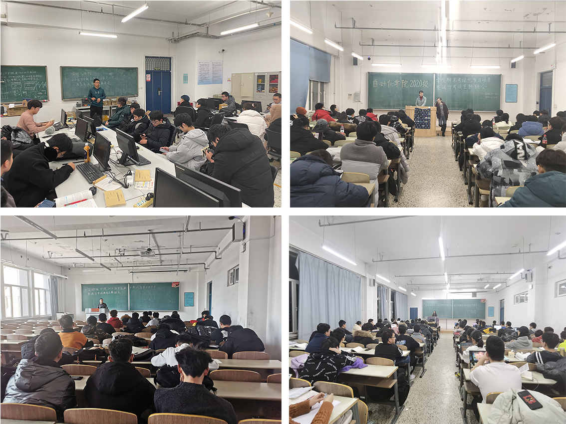 按照会议要求,12月15日至20日,各班班主任会同助理班主任深入晚自习教室召开各新生班级主题班会,对期末考试总复习开展动员并进行诚信考试教育。各班班会总结了开学以来晚自习出勤状况,晚自习整体出勤均良好,未发生无理由旷自习的情况。对班级同学们出现的共性问题进行分析,充分了解同学们的学习状态和高数期中考试成绩,以及同学们温课备考计划。班主任和助理班主任对各科复习方法进行具体指导,分别结合自身成长经历和教学经验,指导学生合理规划期末复习,提高学习效率。班主任解读了学校有关学生留降级、退学相关文件,让新生了解学习成绩警示制度,让新生高度重视有关学业的文件精神,刻苦努力,力争第一次期末考试取得优异成绩。