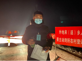 机电18-3班吴彪:新冠肺炎疫情时刻牵动着大家的心,作为一名当代大学生,我参加了家乡的防疫志愿者工作。我协助工作人员对居民进行排查,同时在社区站岗,对社区来往人员进行登记与检测。在社区书记的指导下我们努力完成各项工作。我相信在党的领导下,全国人民万众一心、同舟共济参与防疫,相信未来一定美好。