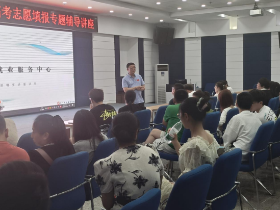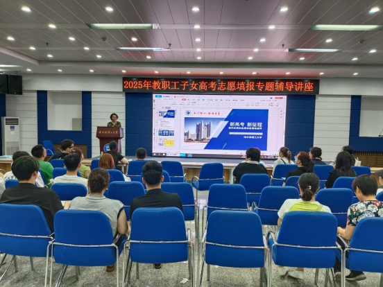 为服务广大教职工,扎实为教职工办实事,搭建好教职工及其子女与我校招生工作人员面对面咨询交流的平台,使其能够充分了解高校招生政策,科学、理性地填报高考志愿,校工会、教务处于6月26日18时在西区一号楼第一会议室联合举办了2025年教职工子女高考志愿填报专题辅导讲座,校工会副主席王立明、教务处副处长刘鸿图出席活动,教务处招生办公室全体工作人员和30余名教职工及其子女和家属参加本次活动。