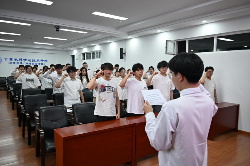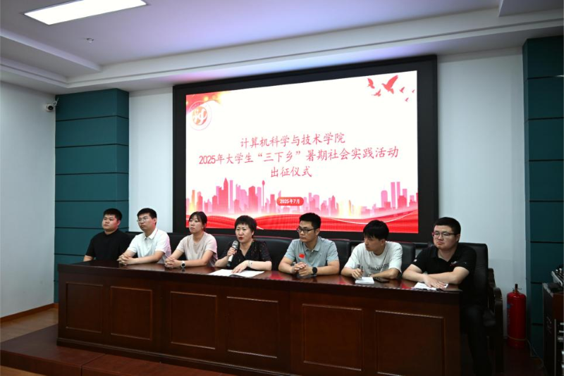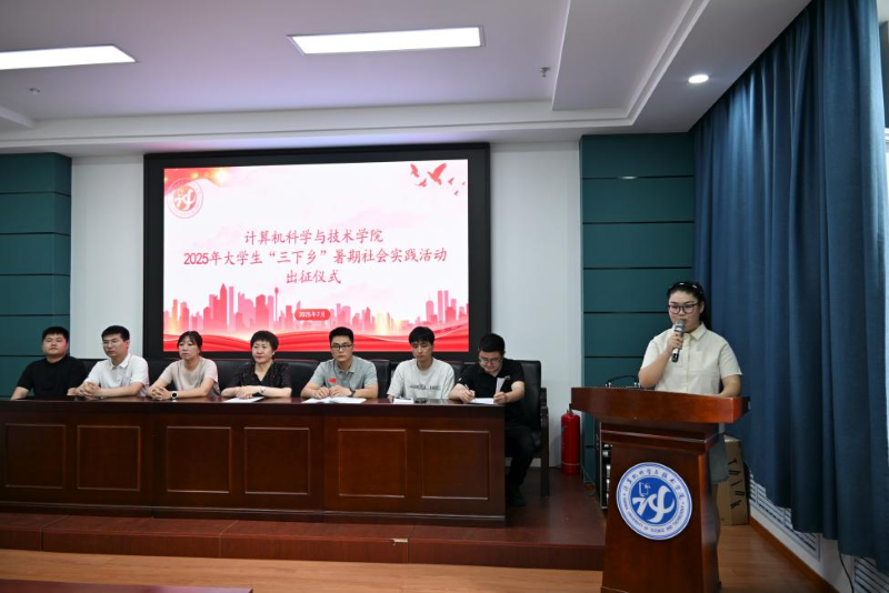 为深入学习宣传习近平新时代中国特色社会主义思想,全面贯彻习近平总书记关于青年工作的重要思想,引导和帮助青年学生在社会课堂中受教育、长才干、作贡献,切实做好暑期大学生“三下乡”社会实践活动,7月8日下午,计算机科学与技术学院在新主楼E1523会议室举行“三下乡”暑期社会实践活动出征仪式。学院党委副书记陈迪男,团委副书记邵明记,带队教师王瑶、孙启智、王薪博、韩海成、石金永及全体队员出席仪式,出征仪式由邵明记主持。