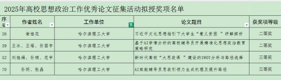 立足新征程,肩负新使命。学校将始终坚持以习近平新时代中国特色社会主义思想为指引,牢牢把握教育强国建设的核心课题,聚焦立德树人根本任务,持续巩固深化“大思政”工作格局。学校将以此次获奖为新的起点,进一步激发思政工作队伍的研究热情与创新活力,深化思政工作规律研究,推动理论创新与实践探索深度融合,不断提升思政工作的时代性、针对性和实效性,为培养担当民族复兴大任、支撑教育强国伟业的时代新人贡献更加强劲的哈理工智慧和力量!