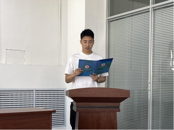 2025级新生代表修兆祺代表全体新生发言,他向学院领导和老师致谢,并代表全体新生郑重表态:第一,恪守学术道德,严守学术规范;第二,勤奋刻苦钻研,勤于阅读、善于思考、敢于质疑;第三,加强团结协作,互帮互助,营造积极向上的良好集体氛围,努力为实现中华民族伟大复兴贡献青春力量。