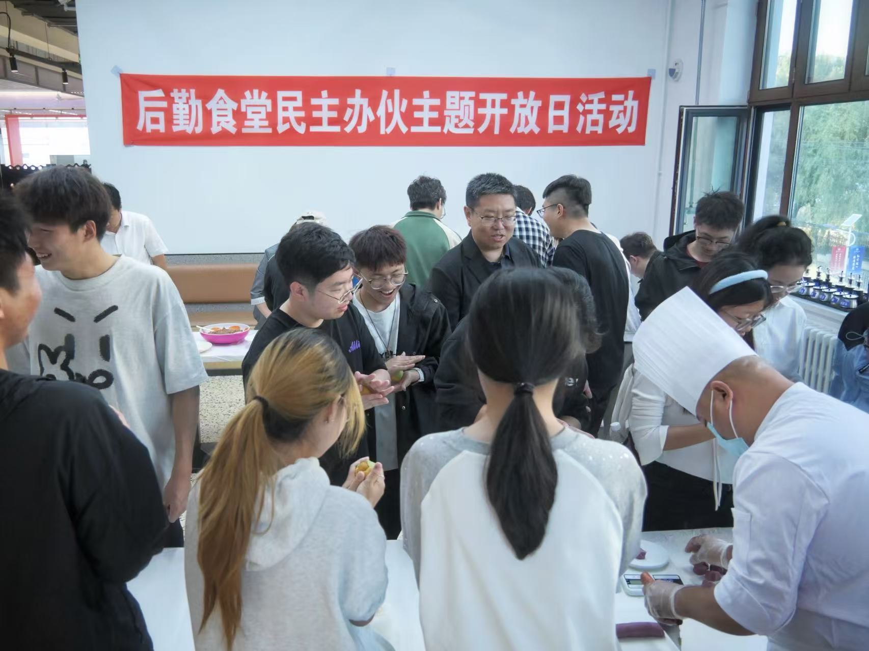 为扎实推进校园餐饮民主办伙机制建设,持续强化食品安全监管效能,积极营造喜迎国庆、服务育人的良好氛围,9月26日,后勤食堂民主办伙主题开放日活动在学校中心食堂成功举办。来自各学院的37名学生代表走进食堂一线,实地参与餐饮监督,共话服务提升,以实际行动庆祝中华人民共和国成立76周年。副校长林屹出席活动并讲话,后勤管理处党委书记刘畅,副处长邹芸潞、张大为参加活动。活动由张大为主持。