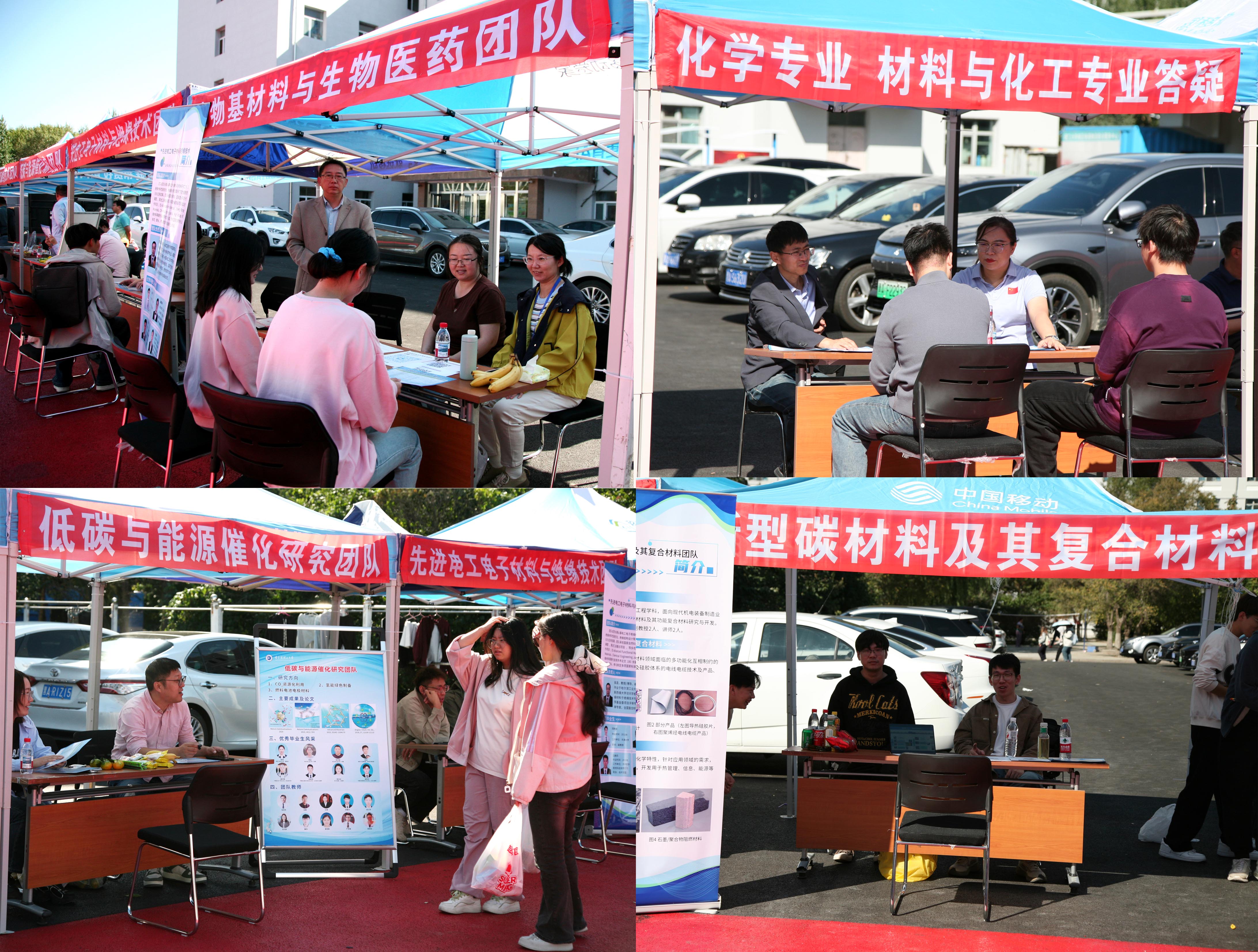 200余名来自齐齐哈尔大学、佳木斯大学、绥化学院、大庆师范学院、黑龙江东方学院等外校学子及本校学子参加了现场咨询会,他们或驻足展板前凝神细读,或围坐桌旁深入交流,聆听低碳能源、新型碳材料、新能源材料与器件、光电功能材料、团簇与微纳能源转化、高端精细化学品制备、生物基材料等前沿方向的介绍,感受到科研与产业交融的脉动。每一顶帐篷背后,都是一个深耕多年的科研团队,他们用成果说话,用热情引路,让冰冷的技术术语有了温度。通过面对面交流,学生们更加明晰了研究方向与自身发展的契合点,现场氛围热烈而有序。