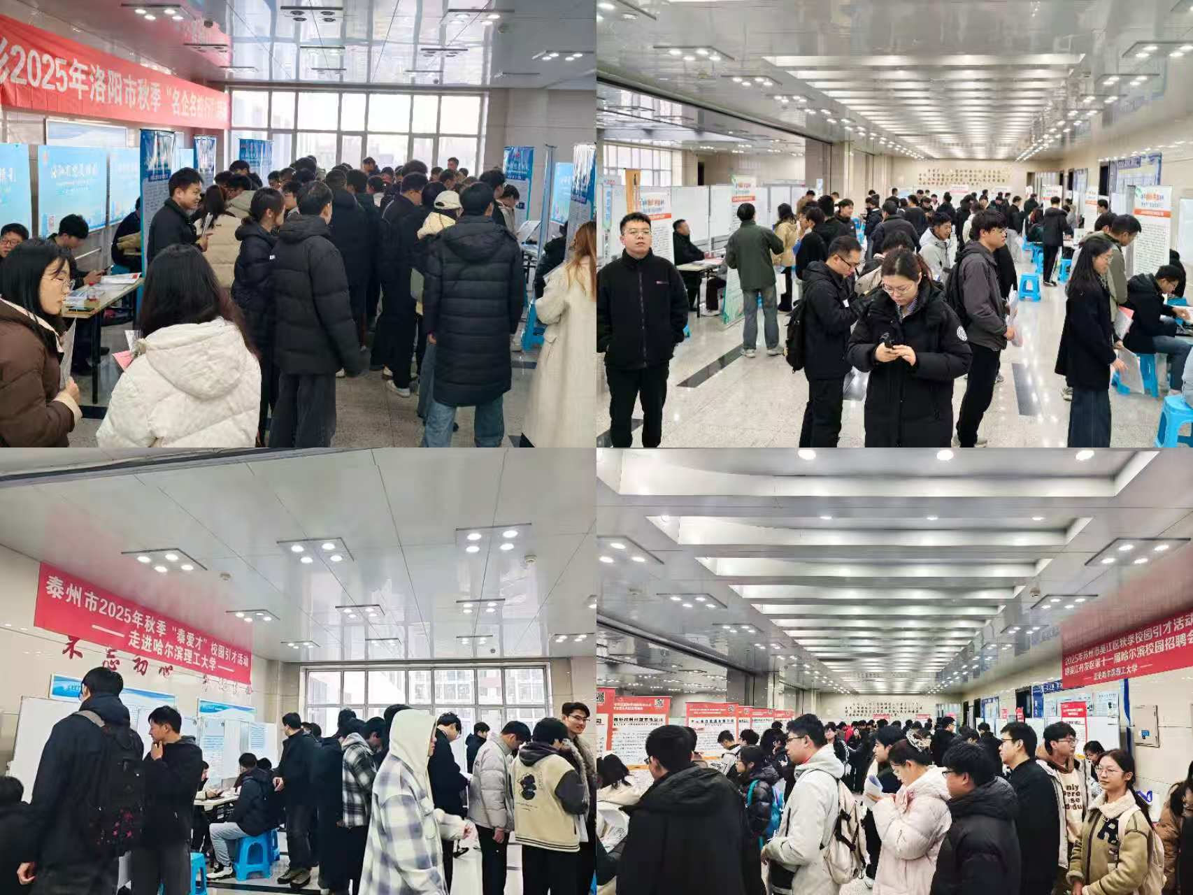近日,洛阳市、烟台市、泰州市及苏州市吴江区四地招才引智团来访我校并在西区1号楼二层阳光大厅成功举办专场招聘活动。专场活动既是政校企三方深化合作、协同育人的重要实践,更搭建起精准对接平台,为我校2026届毕业生打通了从校园到职场的“快车道”。