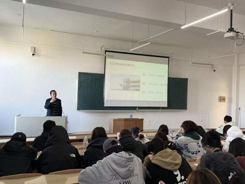 10月17日,外国语学院党委组织员阚锴为培训班学员讲授“观学院发展,悟大珩精神”专题党课。