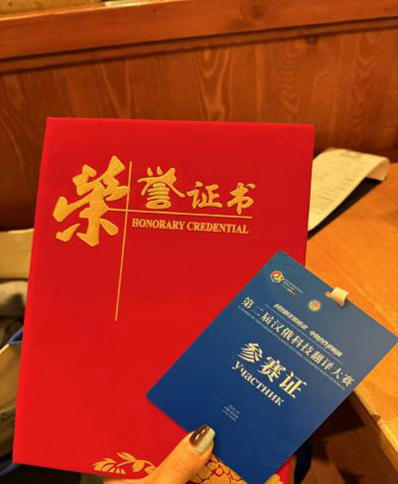 2025级MTI学生张茹蕙凭借扎实的汉俄双语基础、精准的科技术语把控能力,在全国众多优秀选手中脱颖而出,荣获全国优胜奖,充分体现我院在“新文科”与“新工科”融合背景下,复合型、创新型外语人才培养的显著成效。