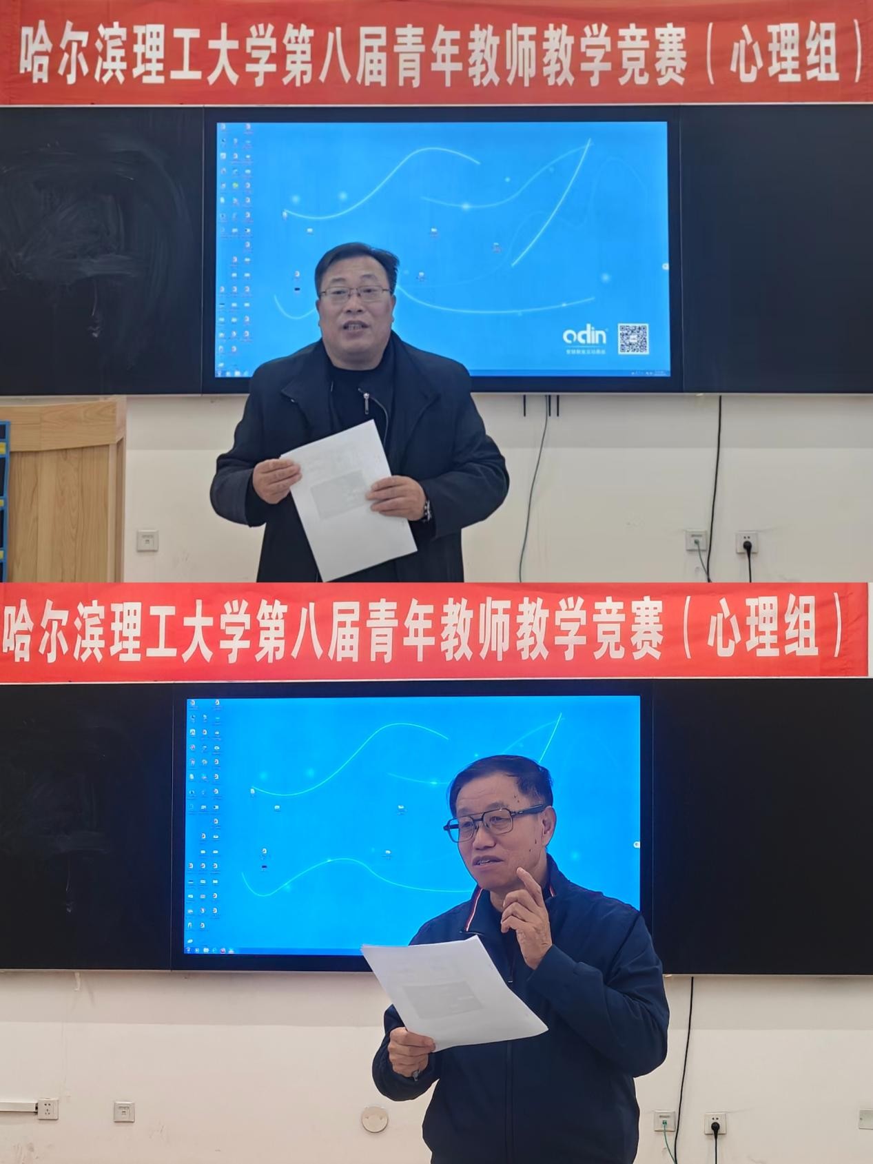 本次竞赛特邀黑龙江大学教师发展学院教授、中国心理学会心理学教学工作委员会委员、黑龙江省应用心理学会会长郝春东;哈尔滨理工大学教学督导委员会委员崔玉祥教授;哈尔滨理工大学理学院党委书记宋广军、校党委统战部副部长王莉娟、组织部副部长杨剑锐五位专家担任评委。校工会常务副主席单鹂娜、党委学工部部长戴湘竹、副部长田海燕、心理健康教育中心主任吕彬江出席竞赛现场。竞赛由戴湘竹部长主持,部分大学生心理健康课程授课教师到场观摩学习。