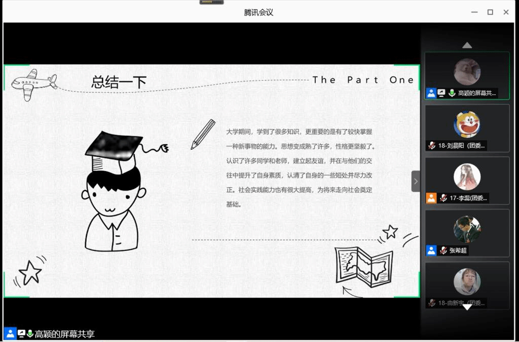 此系列经验分享会使同学们收获良多,对学习、工作、生活中的成长有了很大的促进,引导着青年团员们树立正确的积极的思想观念,更加积极进取,不懈追求。青少年是中国新时代的圆梦者,“有理想、有本领、有担当,国家就有前途,民族就有希望”,这是新时代对青年寄予的厚望。不付国家众望,努力学习科学文化知识,提高自己的能力,不忘初心牢记使命,争做新时代青年,为中华民族的伟大复兴奋斗终生。