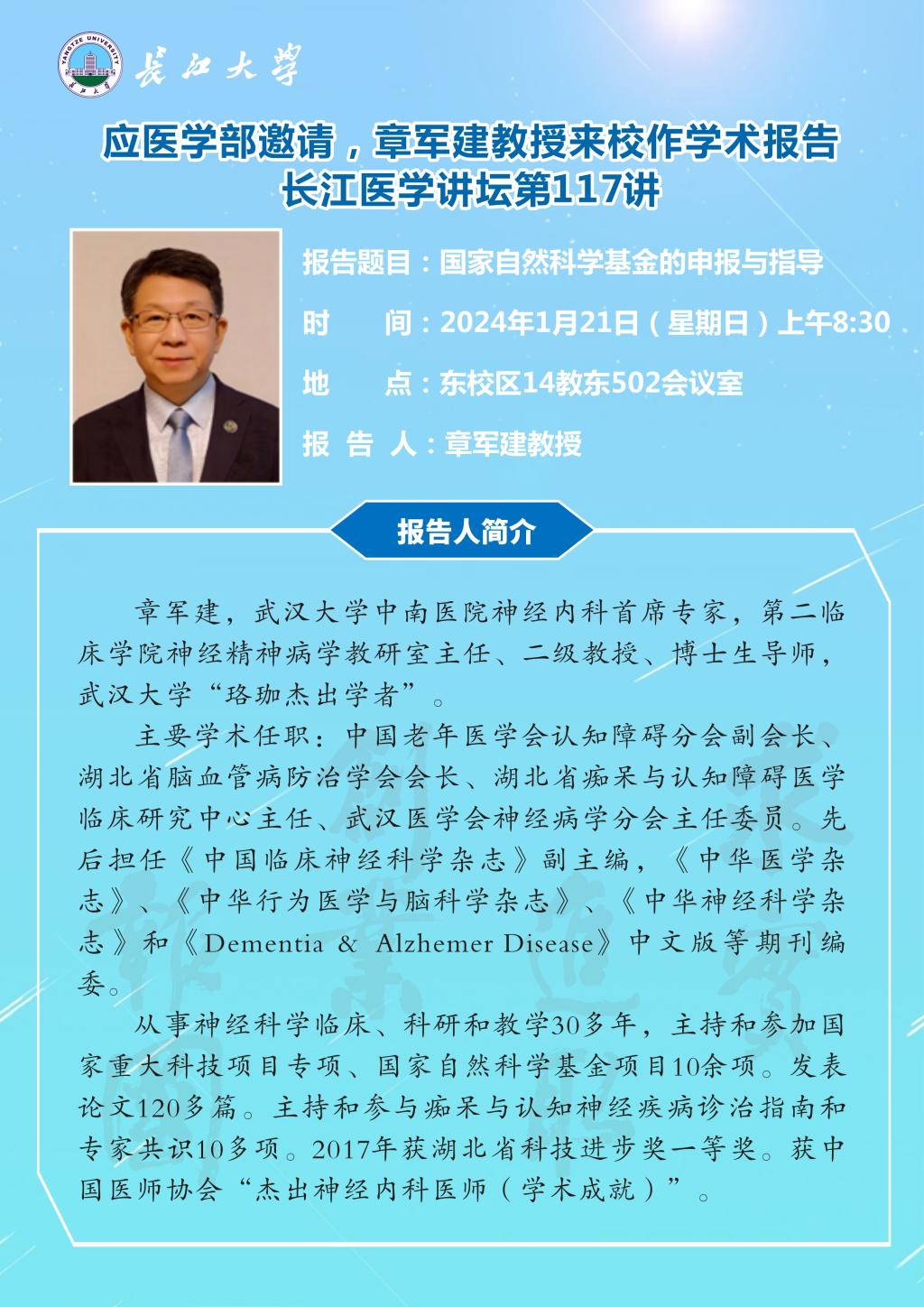 长江医学讲坛117讲 国家自然科学基金的申报与指导