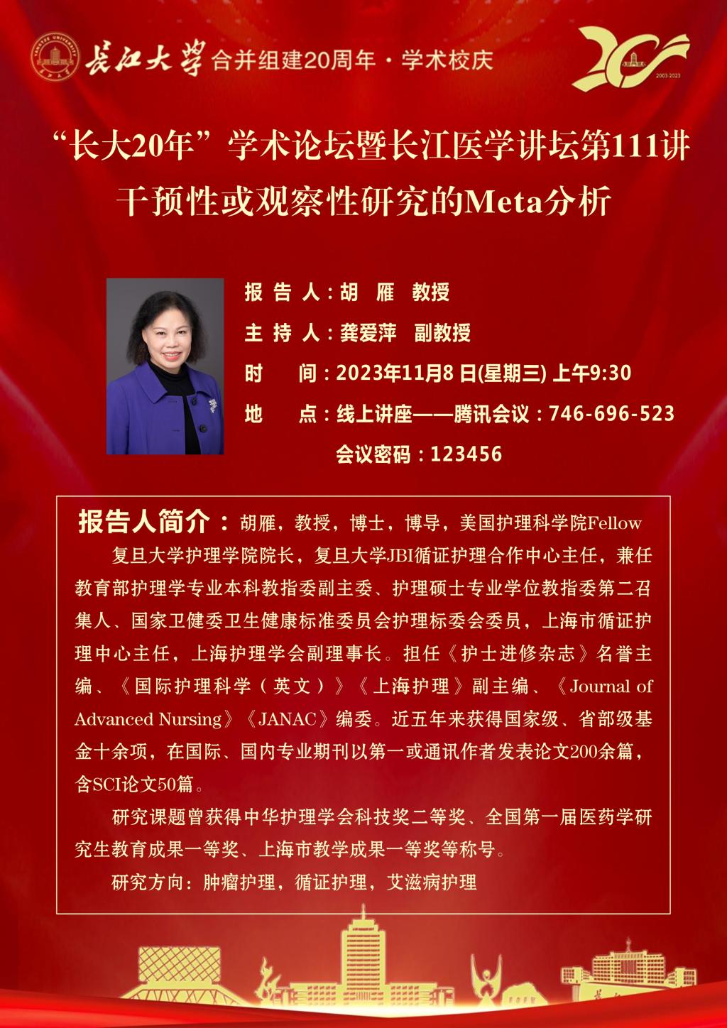 “长大20年”学术论坛暨长江医学讲坛第111讲干预性或观察性研究的Meta分析
