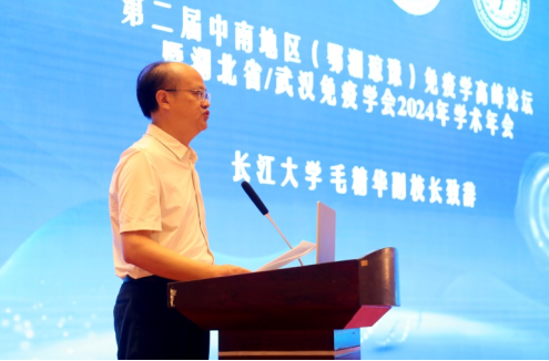大会由湖北省免疫学会副理事长郑芳教授主持,副校长毛精华代表长江大学向出席会议的各位专家表示热烈欢迎,介绍了学校医学教育取得的卓越成效,指出此次论坛是继今年5月份在我校举办的“2024年基础免疫学术研讨会”之后的又一场学术盛宴,希望以此为契机,广交学术朋友,广纳真知灼见,加强交流合作,共同致力于推动免疫学等医学事业高质量发展,以更高水平的医疗卫生保障服务能力不断增进民生福祉、早日建成健康中国。鄂湘琼豫四省免疫学会理事长也先后在开幕式上致辞。