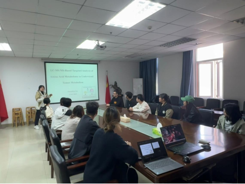 2025年3月24日16:00时,医学部于14教东615举办了主题为“LC-MS/MS-Based Targeted Analysis of Amino Acid Metabolome to Understand Tumor Metabolism”的学术讲座。此次讲座由机能学部刘珍珍副教授主讲。该讲座主要介绍了体内生物样品中氨基酸的LC-MS/MS分析方法的建立,并将该方法应用于监测肿瘤发生发展中氨基酸浓度的变化,阐明氨基酸代谢在肿瘤发生发展中的重要性。该讲座旨在与同行和研究生分享氨基酸代谢与肿瘤的关系,并提供相应的学习和合作的机会,吸引了众多研究生积极参与。
