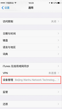 五、安装完APP后,需要对软件进行信任设置,我们通过设置—>通用—>设备管理,对软件进行信任设置。