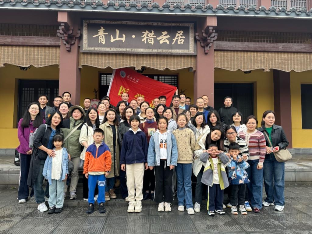 上午840,在医学部领导及分工会负责人的带领下,全体教职工经过40多分钟的车程来到了此次踏青目的地“青山村”,大家首先在青山猎云居大门前合影。