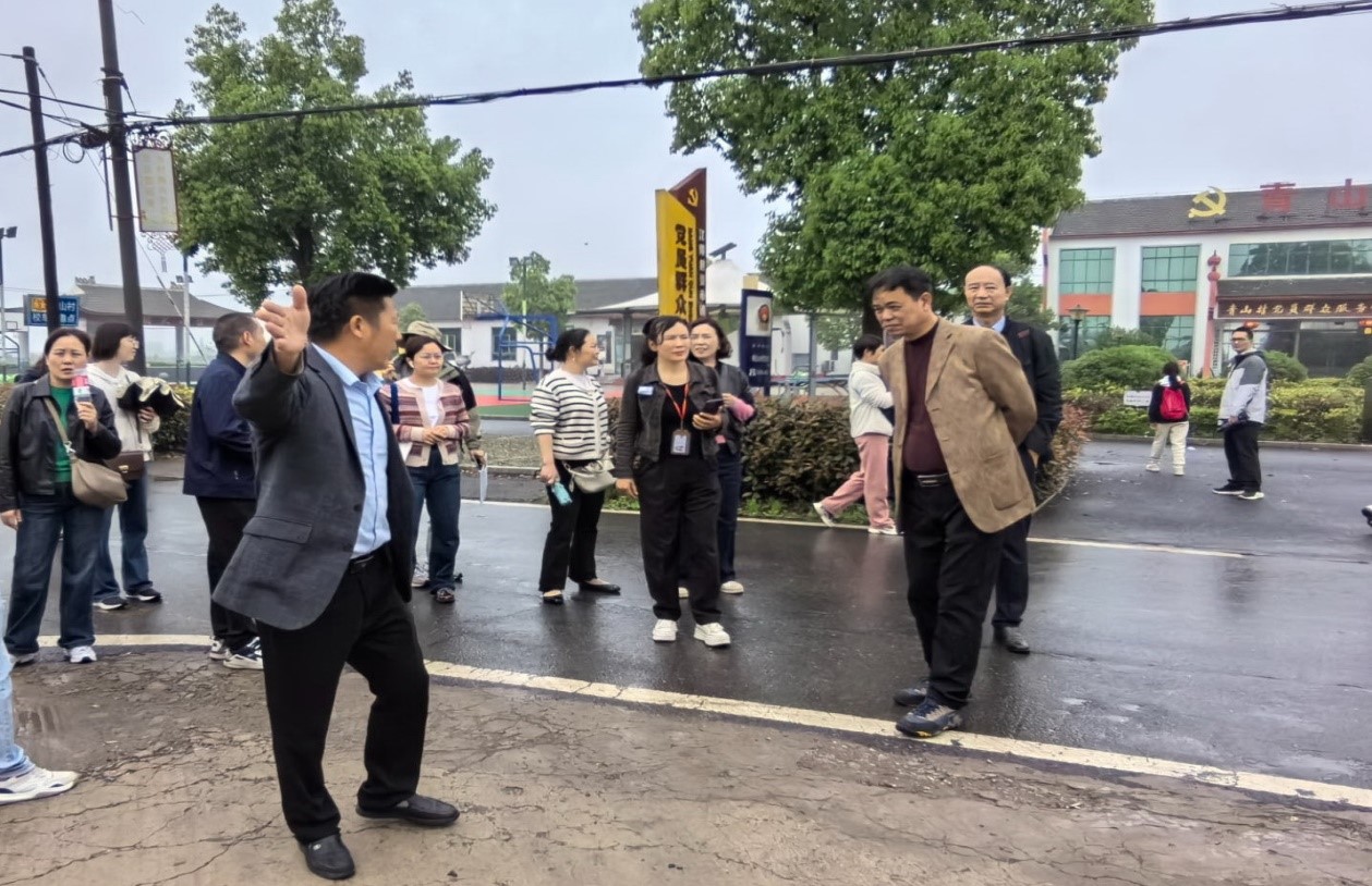 接着教职工在当地村长的带领下,走进青山村,一路是平坦整洁的小道、青翠茂盛的大树、干净整洁的房屋,一幅安静祥和的乡村“画卷”在眼前展开。教职工听取了村长兴致勃勃地介绍着青山村近几年探索出的“高田种吊瓜、低田养龙虾、房前屋后果树开花、散养鸡鹅鸭”的特色种养殖模式,为乡村振兴注入了勃勃生机。