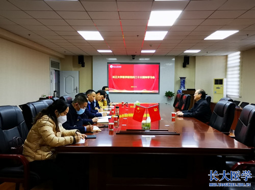 毛精华强调学部全体师生需充分认识学习宣传贯彻党的二十大精神的重大意义,迅速把思想和行动统一到党的二十大精神上来,深刻领悟“两个确立”的决定性意义,进一步增强“四个意识”、坚定“四个自信”、做到“两个维护”,弘扬伟大建党精神,扛牢“为党育人、为国育才”使命任务,为学校建设省属高水平大学贡献医学力量。