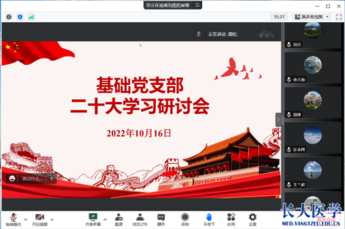 2022年10月16日上午10时,举国关注、举世瞩目的中国共产党第二十次全国代表大会在人民大会堂开幕,习近平总书记向大会作报告。医学部全体师生在学校党委的统一部署下以线上线下相结合的方式组织收听收看了中国共产党第二十次全国代表大会开幕会,深入领会习近平总书记重要讲话精神。会后党员领导干部、师生代表分别以研讨、座谈等形式开展交流学习,结合学习和工作实际热议大会报告。