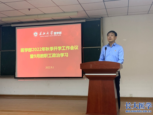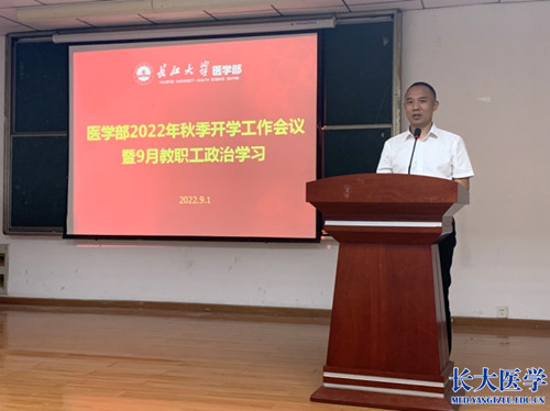 (通讯员 张渊)9月1日下午,在14教410会议室召开秋季开学工作会议暨9月教职工政治学习,医学部全体教职工参加会议,会议由学部党委书记关辉主持。
