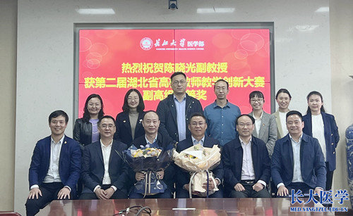 (通讯员 张渊)5月19日下午,校党委书记王建平、副校长周思柱、教务处副处长郑健等一行莅临医学部看望慰问“湖北省第二届高校教师教学创新大赛副高组一等奖”获得者陈晓光副教授及团队指导教师任伯绪教授。