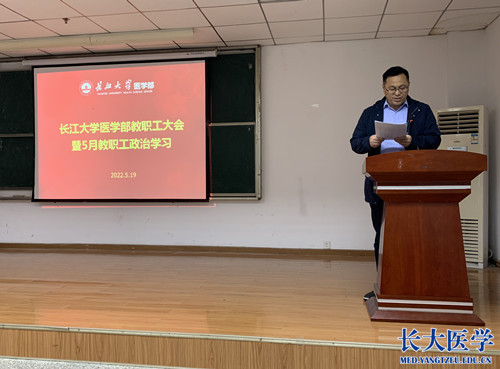5月19日下午,在14教410会议室召开教职工大会暨5月教职工政治学习会议,医学部全体教职工参加会议,会议由党委书记关辉主持。