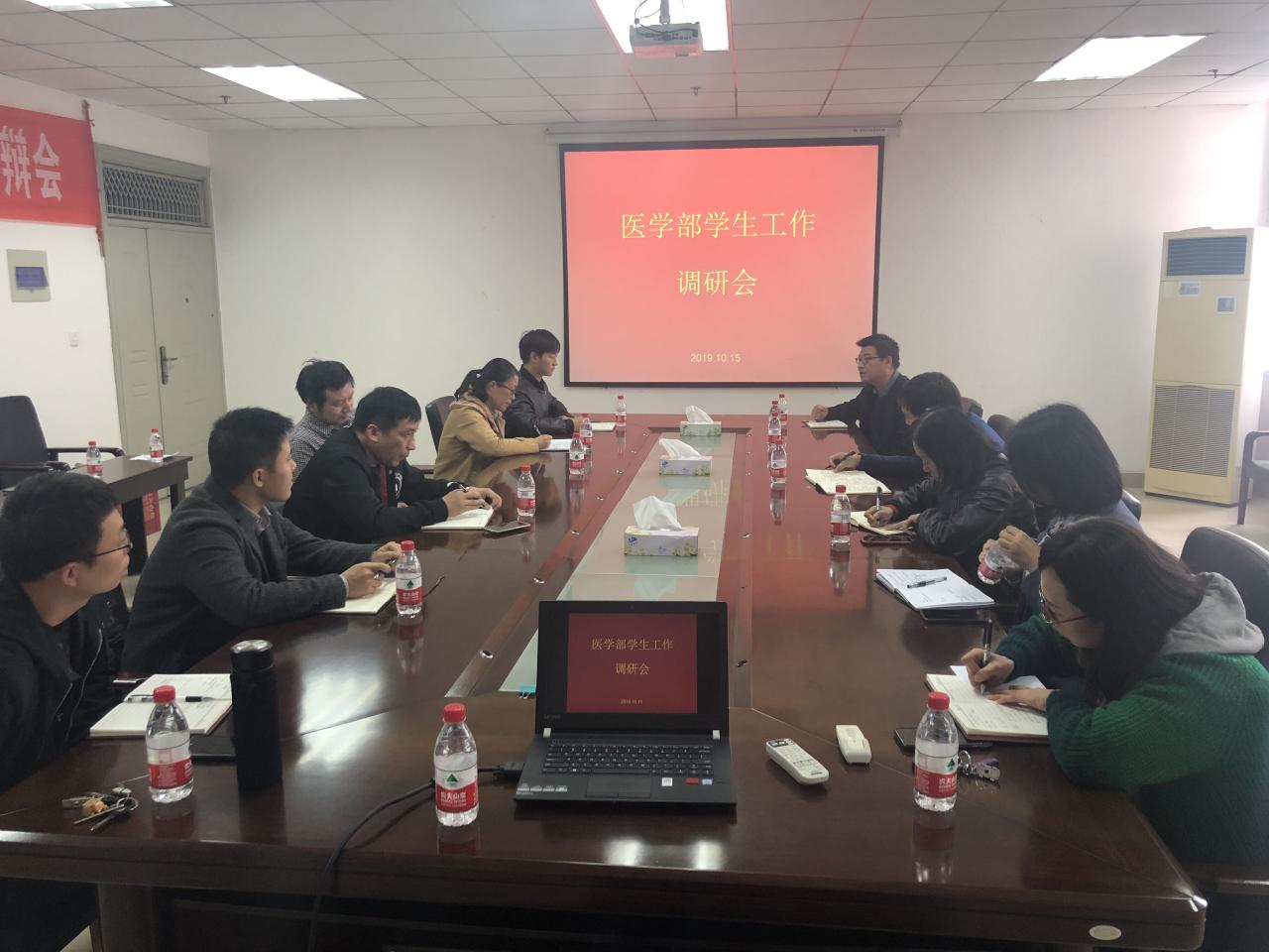 (通讯员:王乾 赵恒园)2019年10月15日14:30,医学部学生工作调研会在14教南615召开。医学部党委书记关辉、各班班主任以及各年级辅导员参加了本次会议,会议由学生事务处办公室主任张昊主持。
