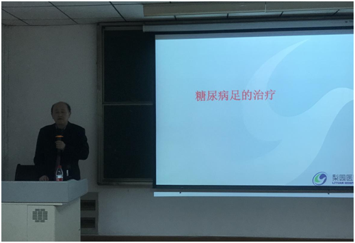 (通讯员 李孝林 赵静)2019年5月16日,我校优秀校友、华中科技大学同济医学院附属梨园医院慢性创面修复科主任、博士生导师李炳辉教授受邀来到长江大学医学部,在14教410学术报告厅作了题为“糖尿病足多学科一站式技术及延伸社区服务”的学术报告。医学部部分青年博士、临床医学专业研究生参加了此次报告会,报告由医学部副部长龚权教授主持。