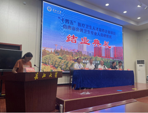 (通讯员 习志江 罗曼 鄢进)7月18日上午,由我校举办的山南市公共卫生专业人员研修班在东校区就业宣讲大厅圆满结业,来自山南的32名学员以及科技援藏医卫项目专班人员参加了结业典礼。结业典礼由医学部常务副部长龚权主持,他表示“本期研修活动内容丰富,形式多样,在学校、医院各级领导的大力支持下,在专班人员的共同努力下,在各位学员的优异表现下,顺利完成了所有研修课程。”