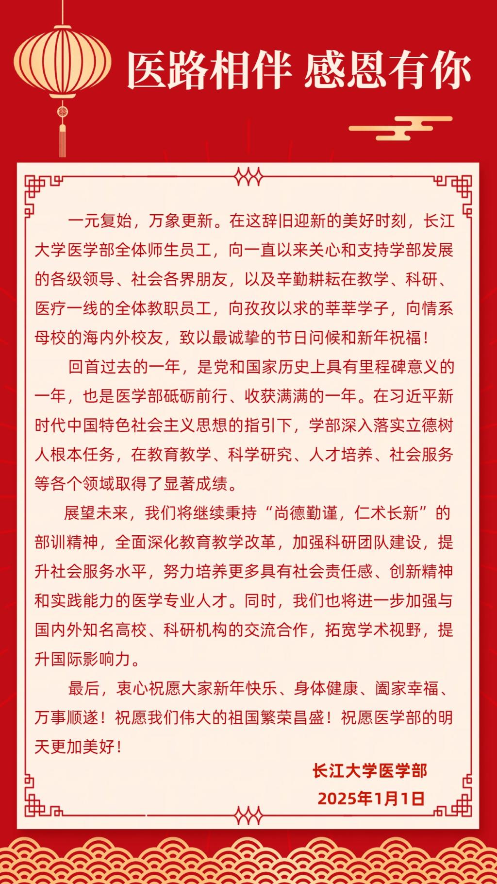 长江大学医学部2025年新年贺词