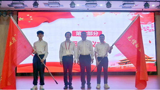 在党建联建启动仪式的高潮部分,长江大学医学部常务副部长陈晓光与荆州市中心血站站长毛国庆共同为“‘医心向党’无偿献血志愿服务队”和“热血先锋”公益团队授旗,并合影留念。这标志着两支队伍正式成立,将在今后的无偿献血公益活动中发挥重要作用。