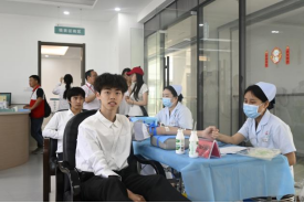 10时整,无偿献血公益活动正式启动。“党员献血先锋岗”前,佩戴党徽的教师党员和学生党员率先垂范,有序完成登记、体检、采血。他们的无私行动感染了在场师生,报名人数持续攀升。采血区外,“热血寄语”明信片书写区人头攒动,志愿者们将对患者的祝福和对党的忠诚凝于笔端;拍照打卡点,“我为党旗献热血”的标语与鲜红的党旗交相辉映,定格下一个个温暖的瞬间。