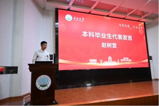 本科毕业生代表赵树萱、硕士毕业生代表程乐、留学生毕业生代表俊杰先后发言,回顾在校学习生活,表达对母校和师长的感恩之情,并倡议以尚德之心、勤谨之态投身医学事业。