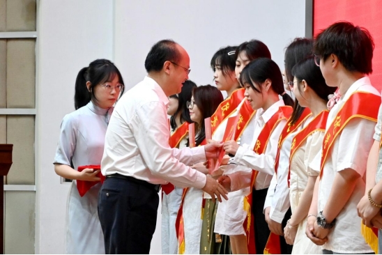 典礼在庄严的国歌声中拉开帷幕。黄群俊书记宣读表彰文件,对优秀毕业生表示祝贺并颁发荣誉证书。
