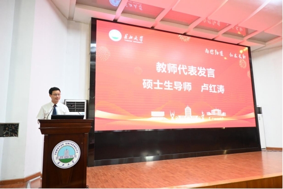 教师代表、硕士生导师卢红涛以“三个选择”的故事,寄语毕业生坚守医学誓言,用一生践行对生命的承诺。